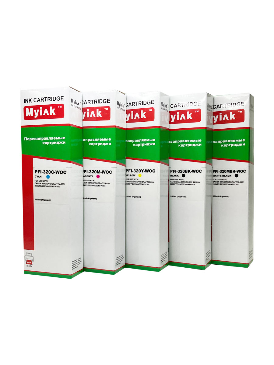 0% ПЗК MyInk Перезаправляемые картриджи ПЗК PFI-120, PFI-320 для CANON imagePROGRAF Canon TM-250, TM-255, TM-350, TM-355 permanent чип, 5шт X 260мл MyInk Наличие: В наличии 0% 20 908 руб Вендор: Canon Артикул: 5236650000 Модель картриджа: PFI-320 OEM Part Number: PFI-320BK/MBK/C/M/Y